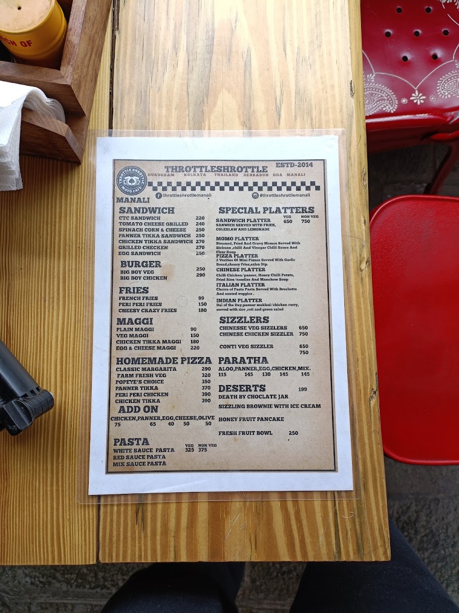 Throttle Shrottle Manali Menu